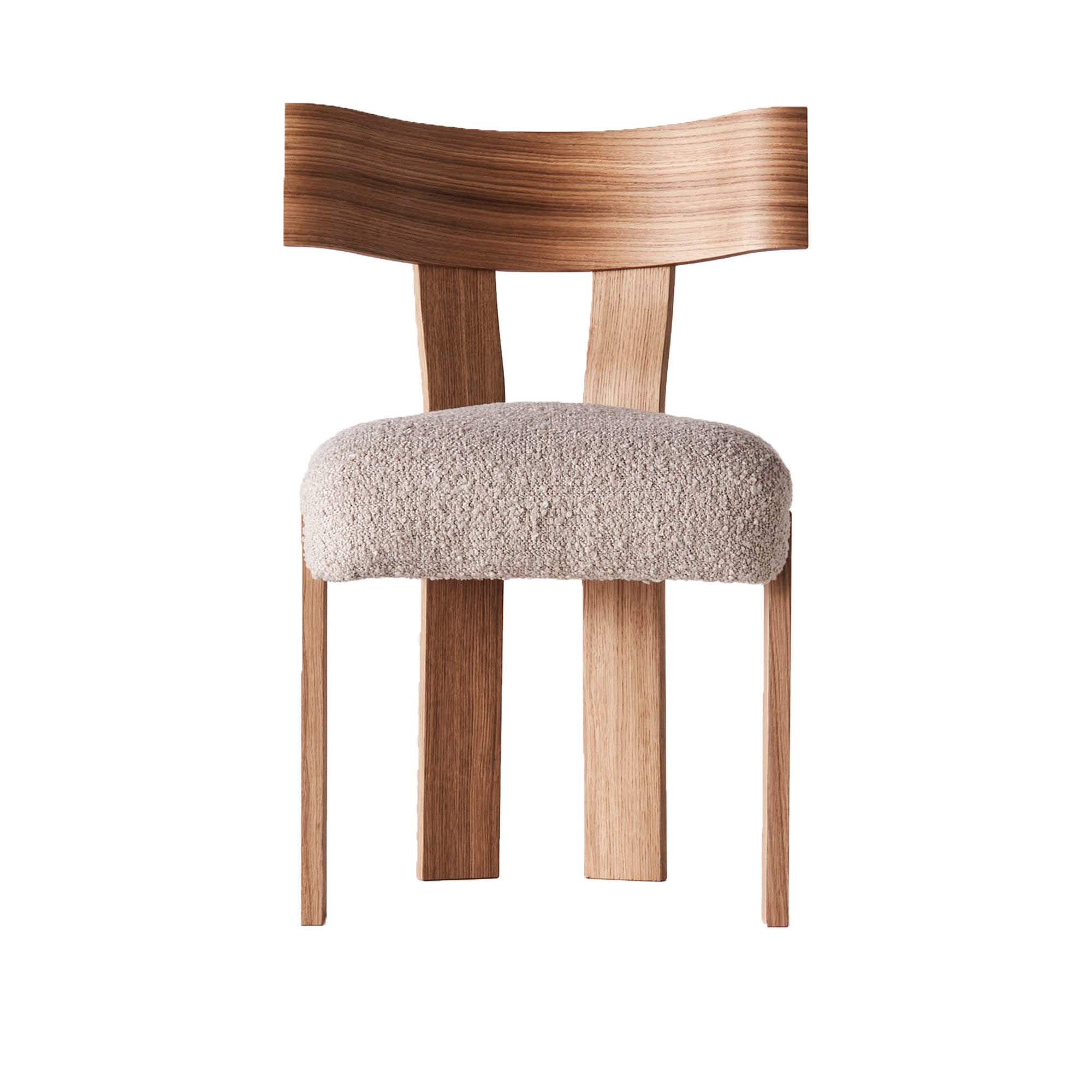 Alba Chair is a dining chair designed by Bross for the Dusty Deco brand. It is a practical and stylish chair with elegant straight and curved lines. The chair is made of solid oak and comes with a comfortable seat. Its front legs are thin from the front and rough from the side, providing high stability. The rear legs have a soft curve that meets seamlessly with the shape of the backrest for maximum comfort. The dining chair was born after a collaboration with the architectural firm Bross Design. The goal was to create a perfect dining chair that fits well with the rest of Dusty Deco's products.