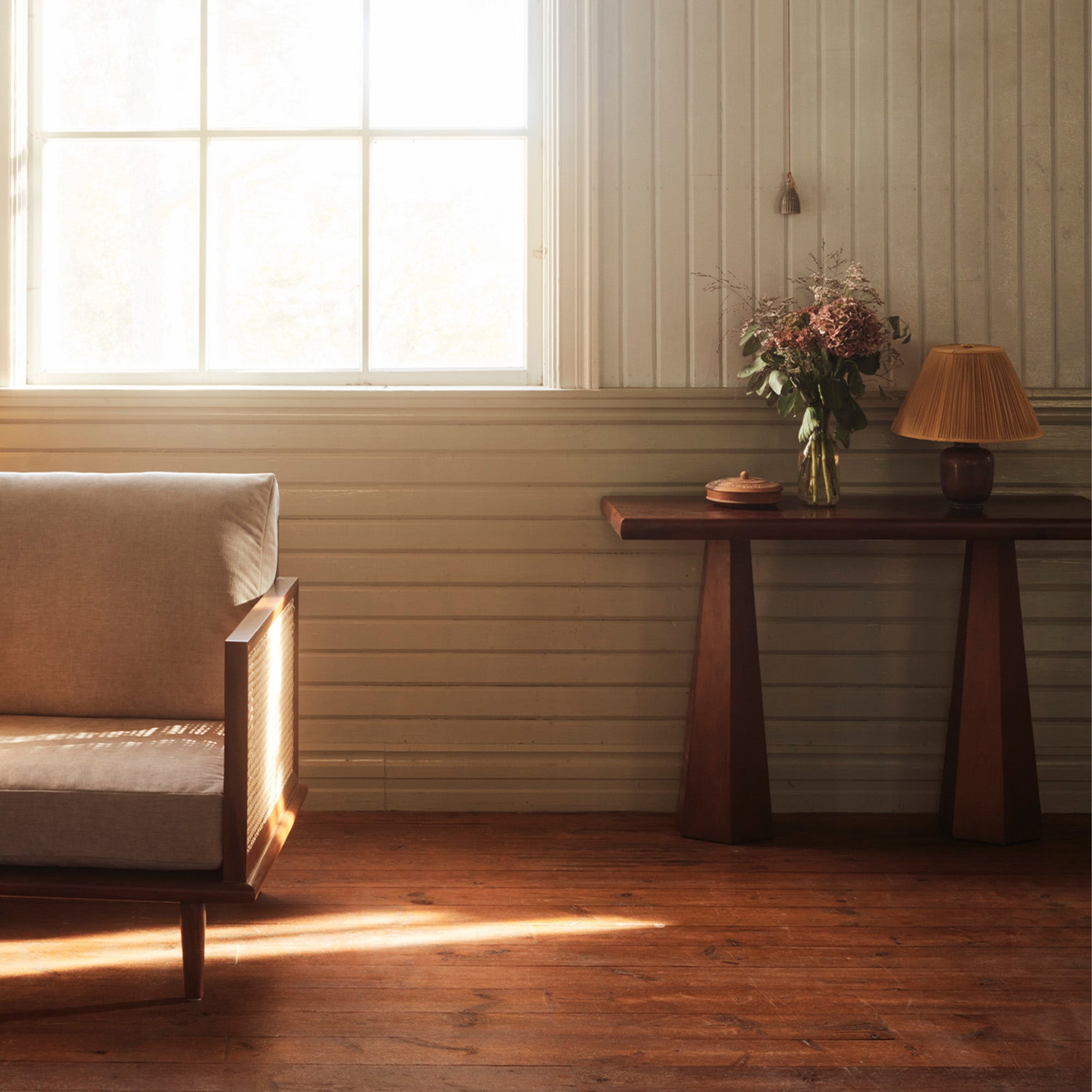 Hexagon Console is a side table designed by Edin & Lina Kjellvertz for the Swedish brand Dusty Deco in 2021. With its modern design, the console table fits in most homes. Decorated with advantage in a corridor, living room or hallway and becomes a natural place to store your favorite details.