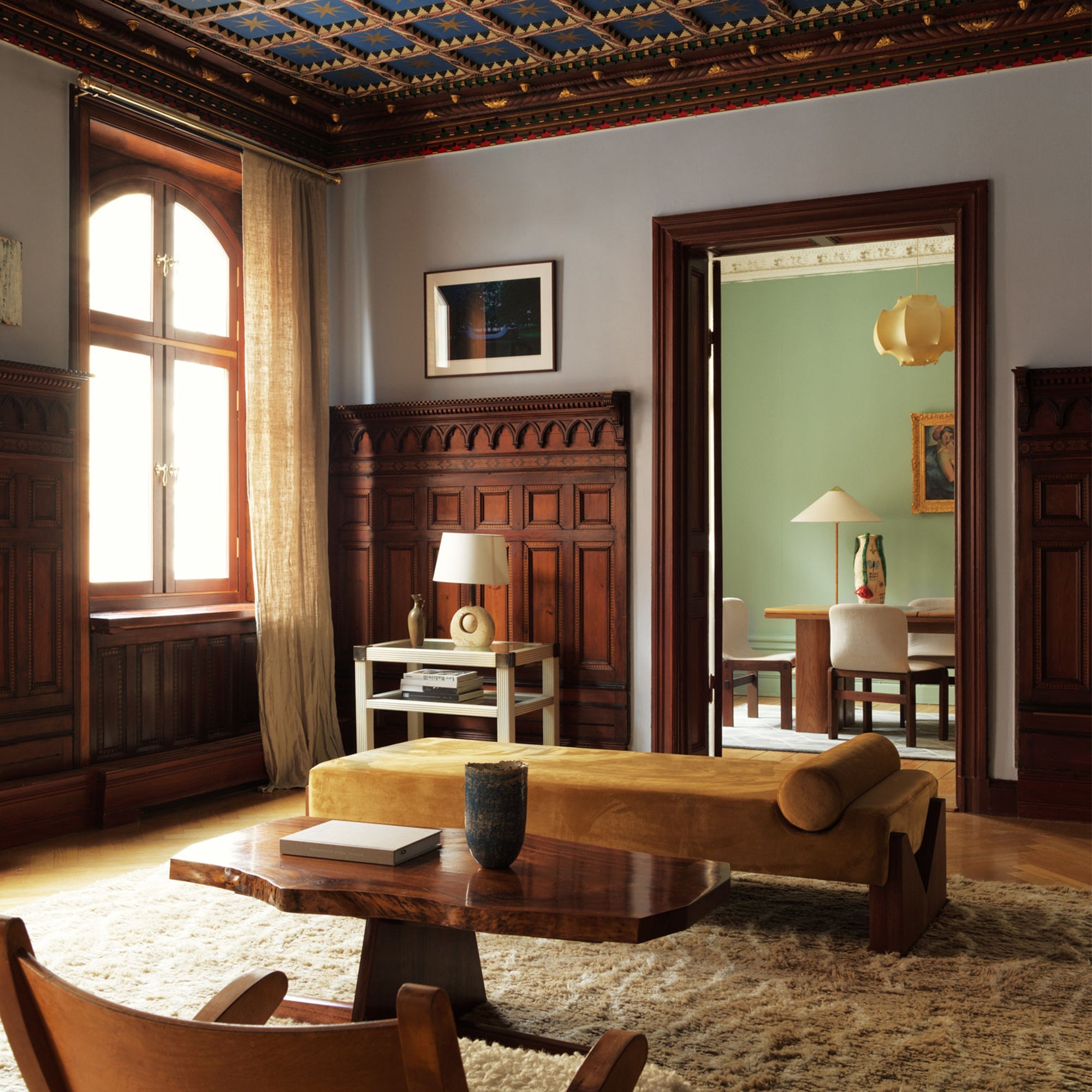 The V Daybed is an exclusive daybed from Swedish Dusty Deco. Designed in 2020, the bed is as elegant as it is comfortable. It is handmade in Bosnia by skilled craftsmen with long experience in wood and upholstery. The daybed has a frame made of solid beech. The characteristic V-shaped legs are also made of beech. The wood has been stained and waxed to achieve a dark and matte finish reminiscent of older vintage furniture.