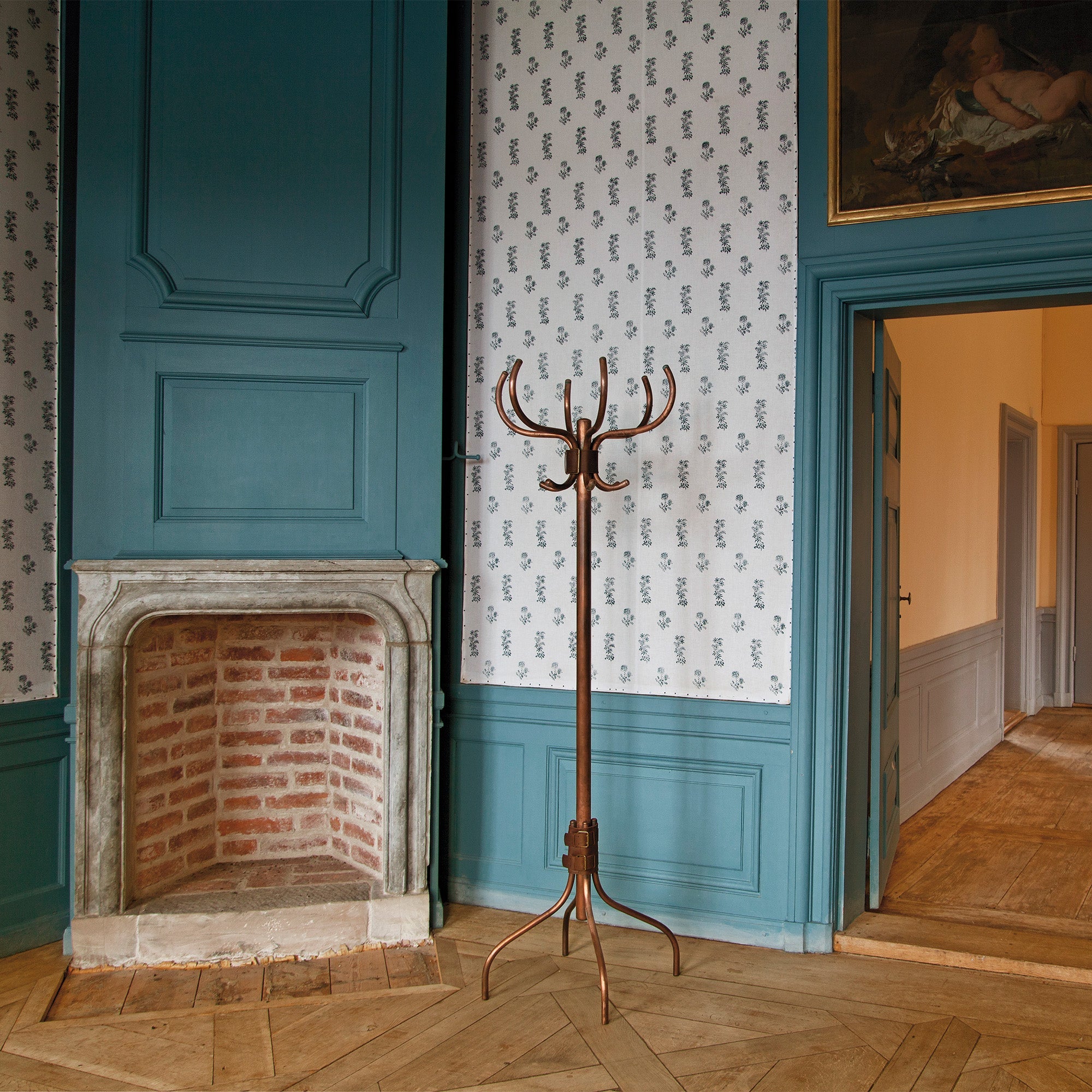 The Babe coat rack by Källemo is designed by Swedish designer Anna Kraitz. Made of steel, it comes in blue or white lacquer or a copper-plated finish. The leather belts, appearing to bind its branches together, are crafted from Tärnsjö Garveri leather. The name Babe nods to Dirty Dancing and the iconic line “Nobody puts Baby in a corner,” referencing how coat racks are often placed in corners.