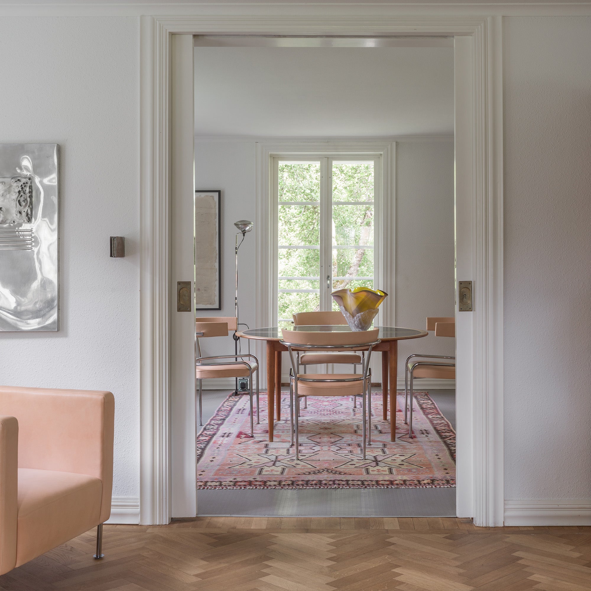 GA-1 was designed in 1931 by Gunnar Asplund for the Swedish Crafts Association's (now Svensk Form) boardroom at Nybrogatan 7 in Stockholm. In 1988, Källemo obtained the production rights for the chair. It is made with a steel frame in chrome and with a seat and back of molded birch covered in vegetable tanned leather. In 2024, Källemo reintroduced the chair at Stockholms Auktionsverk on Nybrogatan 32.