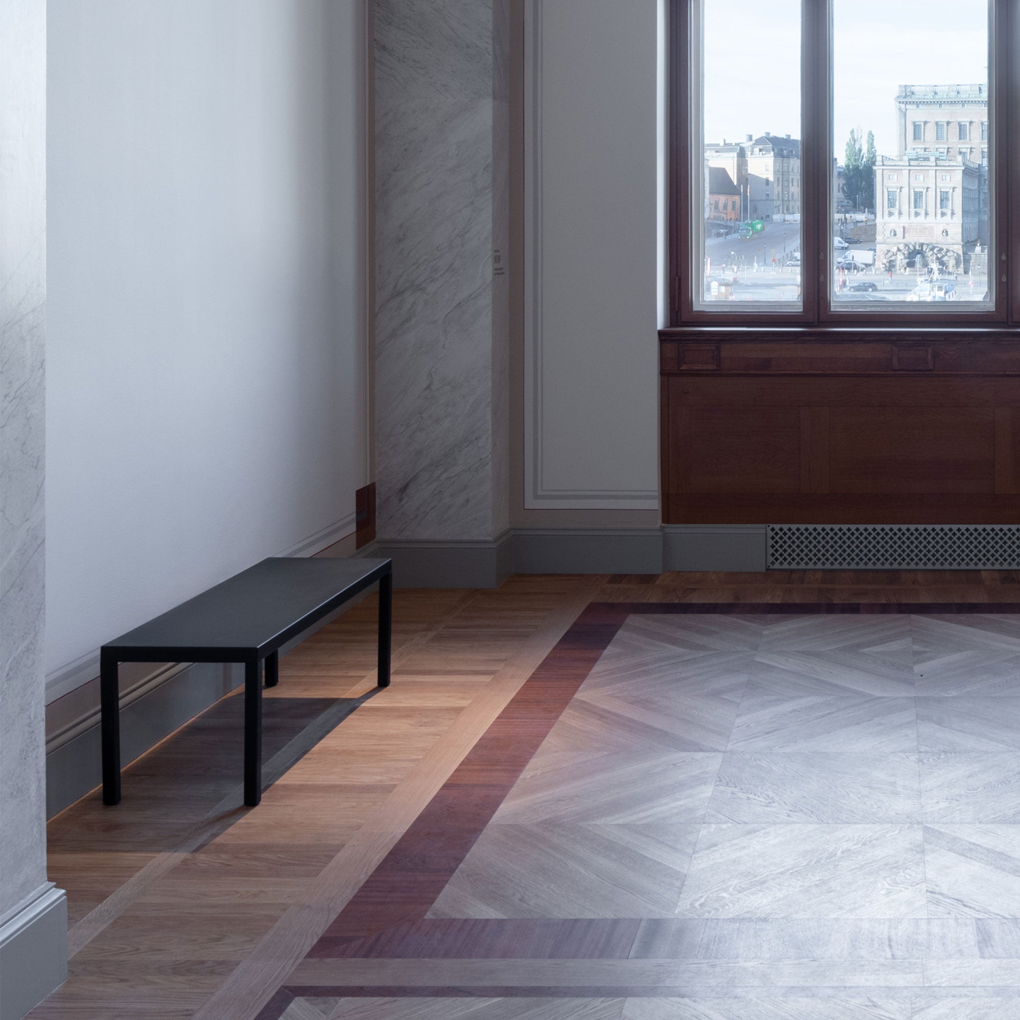 NON Bench is part of the series of the same name and was designed by Komplot Design in 2000 for Källemo. As the NON series is made with a steel frame encased in hard rubber called PUR, it is perfectly suitable for outdoor use. It is waterproof.