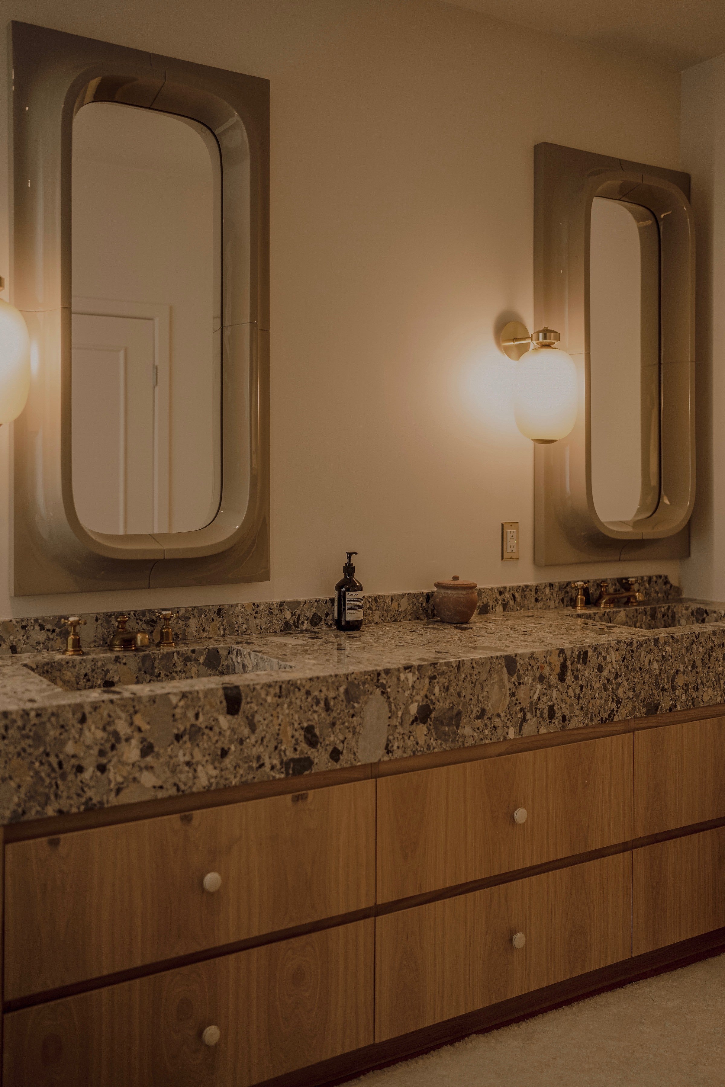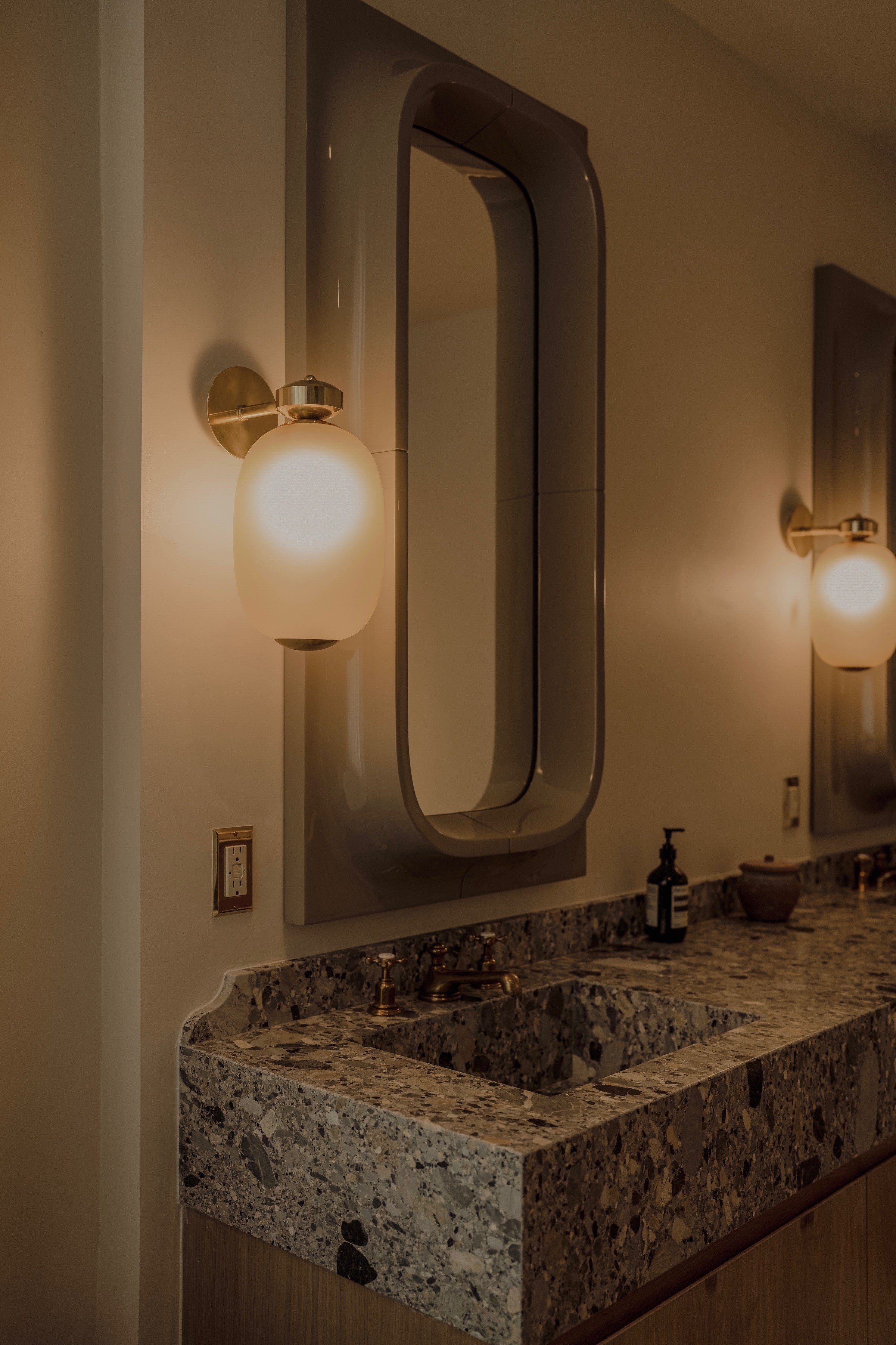 The Porthole Mirror is designed by Willo Perron for NO GA. It’s part of a collection based on the idea of modularity which features six tables and two mirrors in different sizes that can be combined in various configurations. The mirrors work equally well as standalone pieces or arranged together to cover a larger surface. Each Porthole Mirror is meticulously handcrafted by master artisans using fiberglass, which is first cast in molds and then manually coated and polished multiple times to achieve different high-gloss finishes. The entire production process is done by hand, requiring a high level of craftsmanship for each piece. The Porthole Mirrorscome in five colours; white, brown, green, red and anthracite.