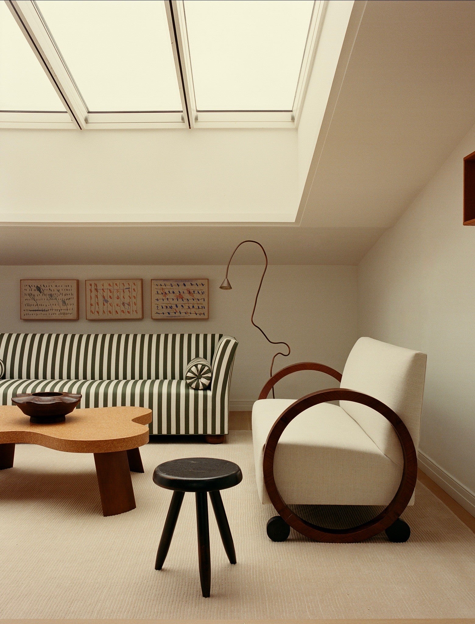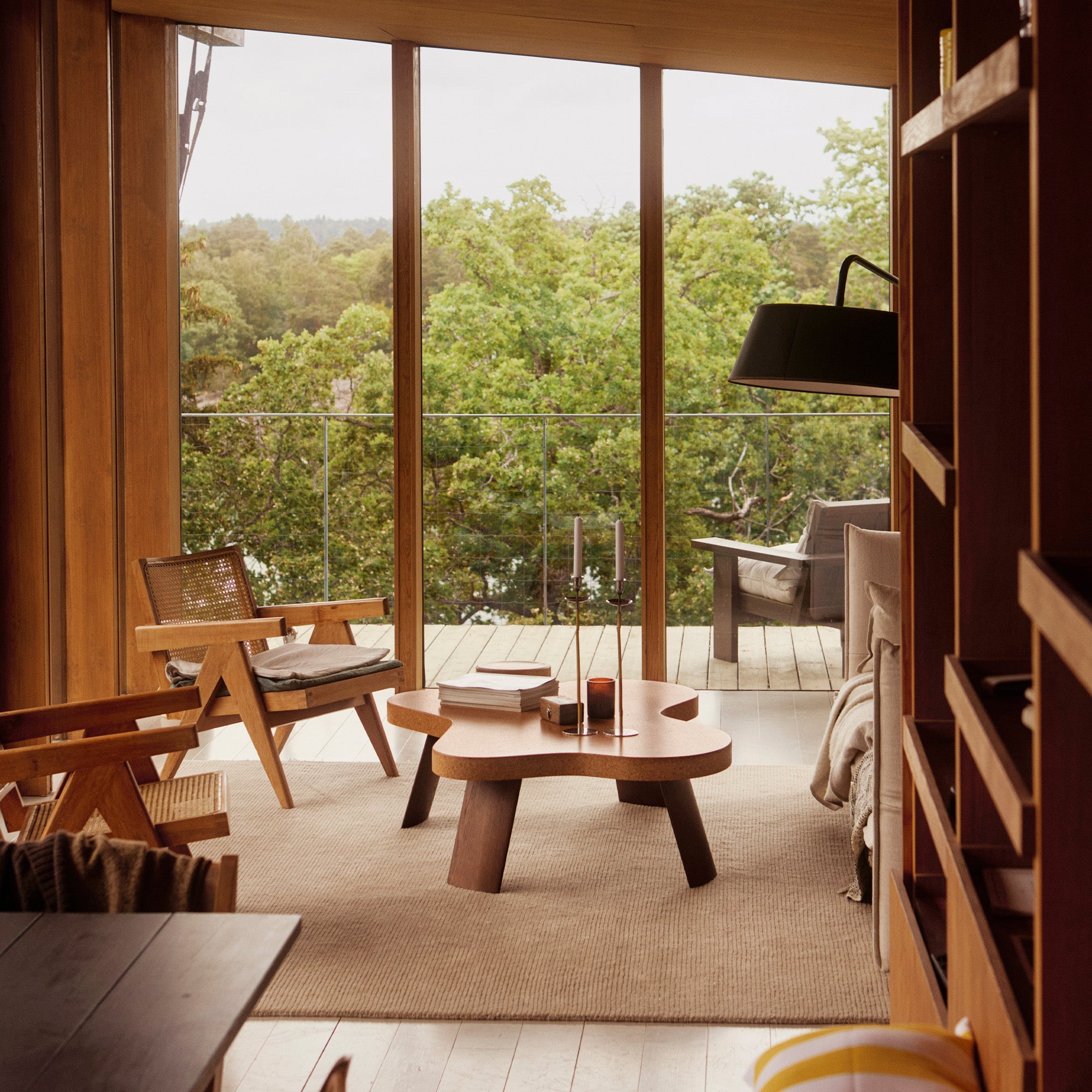 Paul T. Frankl (1886-1958) designed the Amoeba Table (also called “Model no. 5005” and “Cloud Table”) for the Michigan-based Johnson Furniture Company in the late 1940s. The low, cloud-shaped table was marketed as a “cocktail table”, a modernized version of the more classic coffee table. Frankl was one of the most recognized American furniture designers at the time, and good friends with many of the country's modernists such as Frank Lloyd Wright and Raymond Hood. The biomorphic shape of the Amoeba Table was likely inspired by Alvar Aalto, Kaare Klint and other Scandinavian designers, but Frankl added his own eccentric ideas, including a cork top and outward-facing legs, which not only gave the table more stability but also broke with conventional geometry. The result is one of the modernist icons of the mid-century, a design object that is informal and practical, and completely in tune with the times. The Amoeba Table is undoubtedly one of Paul T. Frankl's masterpieces, an enduring and visually commanding design.