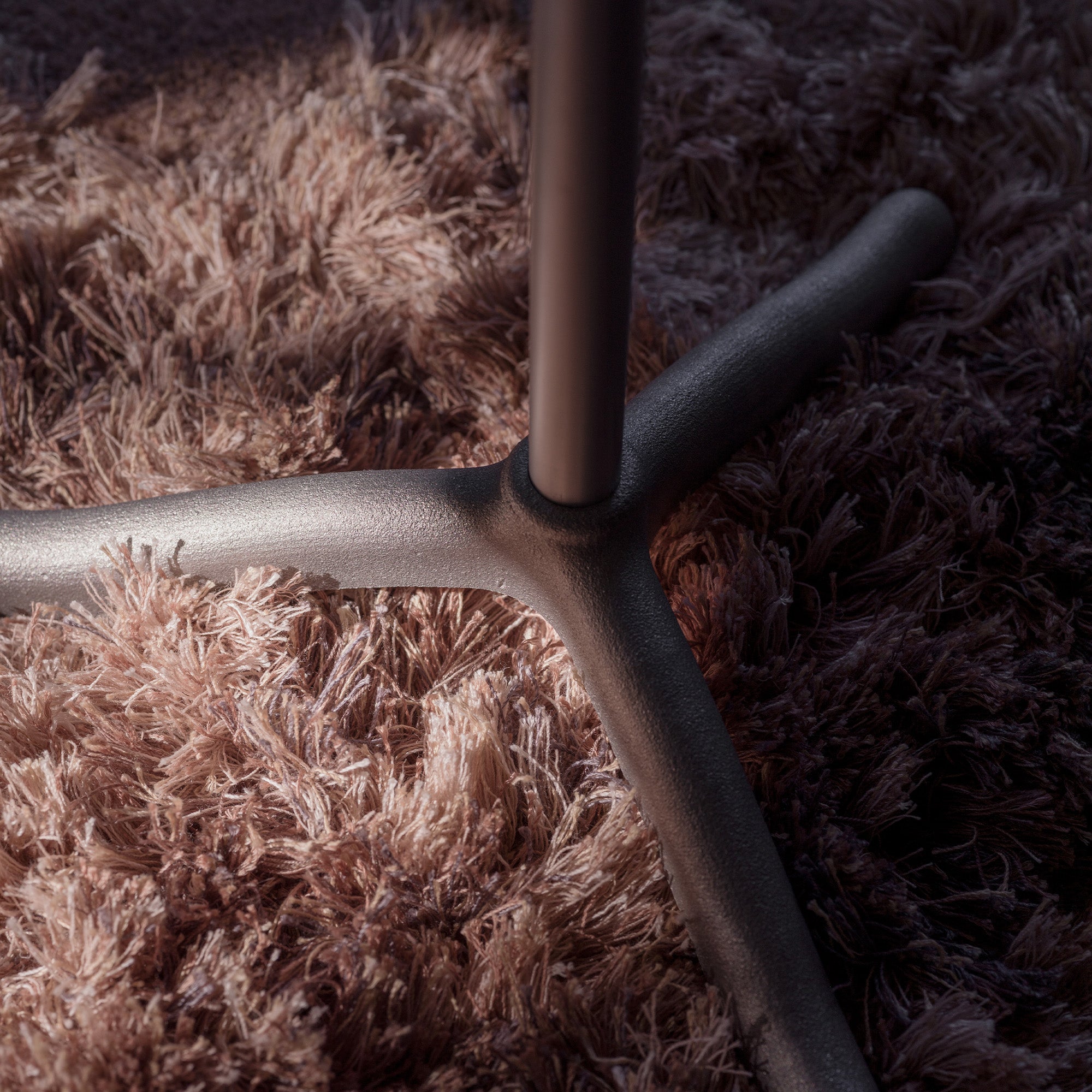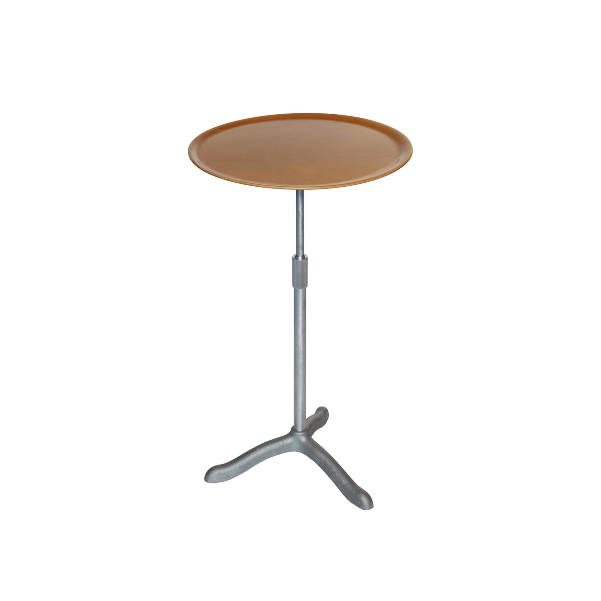 The table Cassis is designed by Mats Theselius for Källemo. The anatomy of the table comes from the microphone stand and is adjustable in height. The tray is made of pressed veneer and then lacquered in clear lacquer or high-gloss paint.